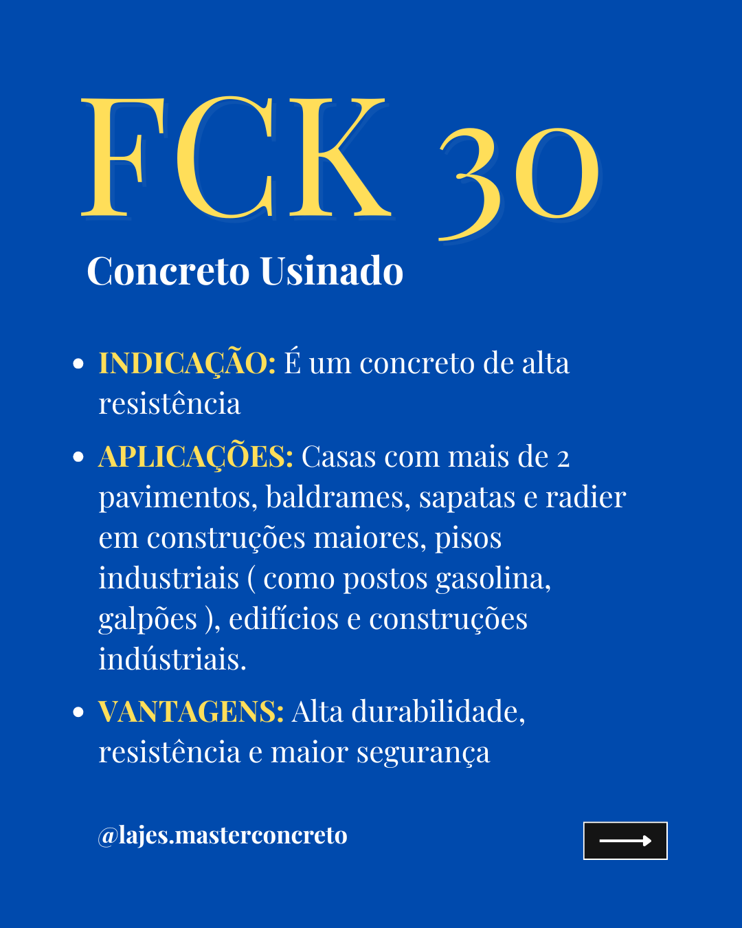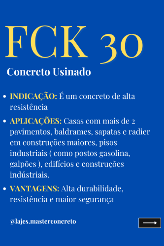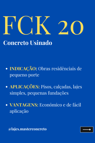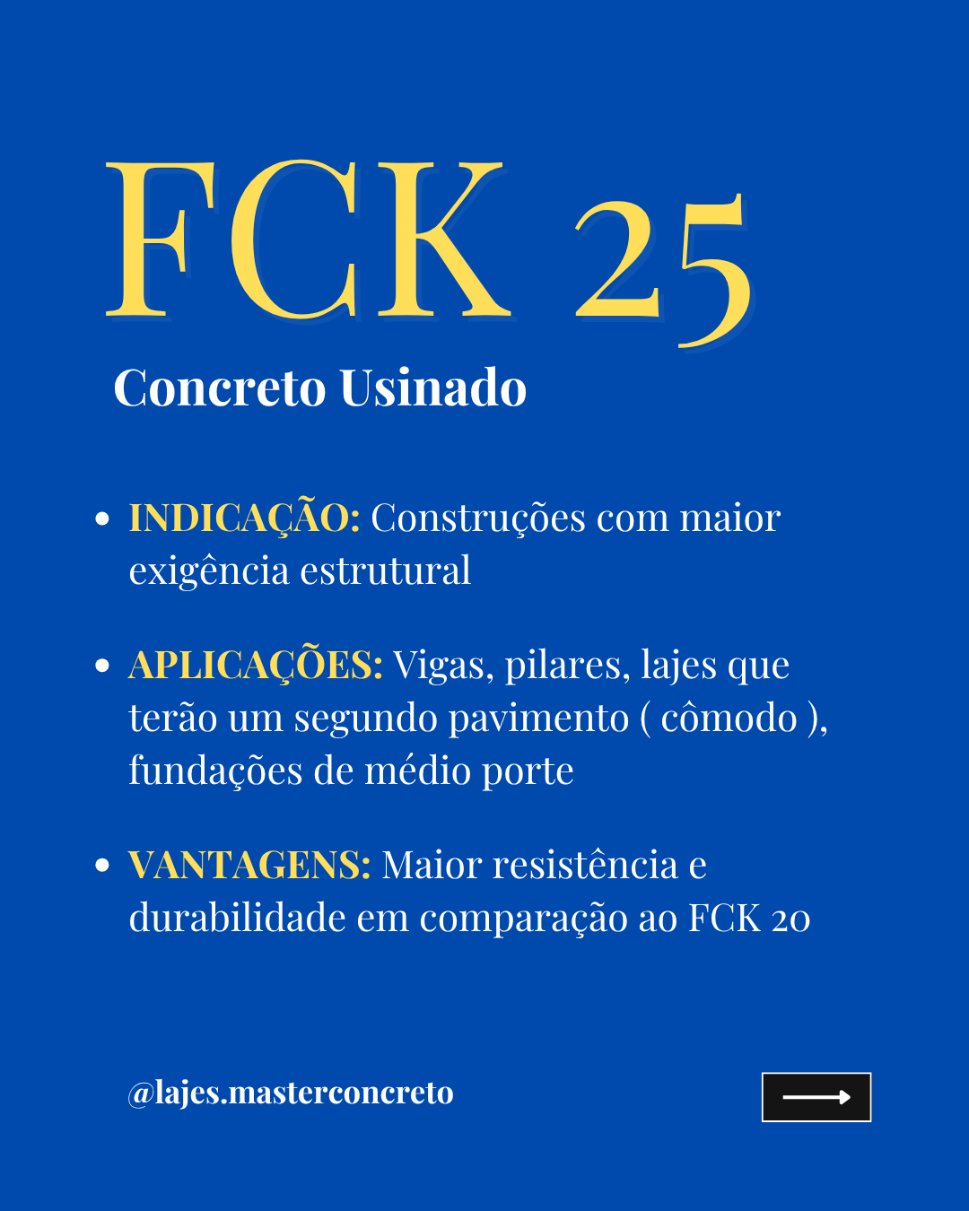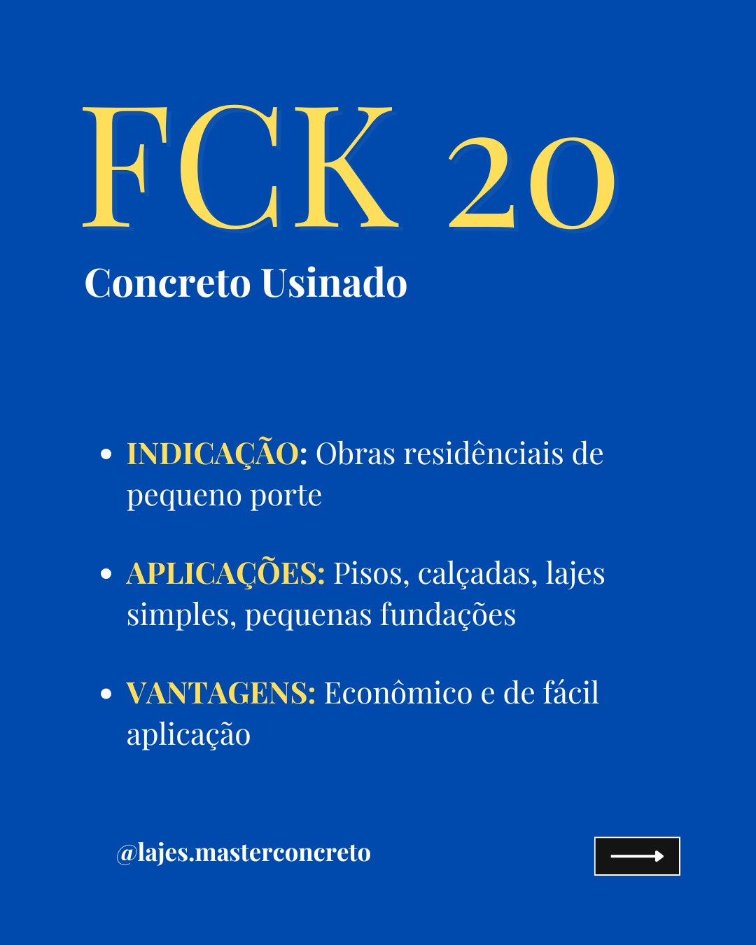 Quanto maior o FCK, maior a resistência do concreto; na prática, um FCK elevado é obtido pela adição de mais cimento em relação aos outros materiais.