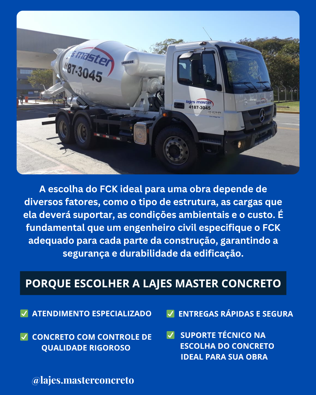 A escolha do FCK ideal para uma obra depende de diversos fatores, como o tipo de estrutura, as cargas que ela deverá suportar, as condições ambientais e o custo.